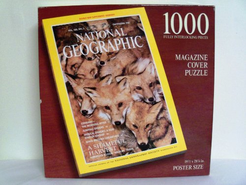 National Geographic Society1000 Piece Magazine Cover Puzzle Vol. 180, No. 3, September 1991 of North American Red Foxes. Puzzle Size assembled is 19 1/2" x 28 1/4".